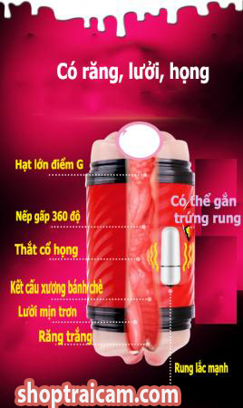 Một bên được thiết kế dựa trên miệng người phụ nữ thực sự với răng, lưỡi và cổ họng sâu. Bờ môi gợi tình và cảm giác lưỡi mềm mại và dẻo dai làm cho bạn cảm thấy như một người phụ nữ thực đang bú liếm dương vật bạn.