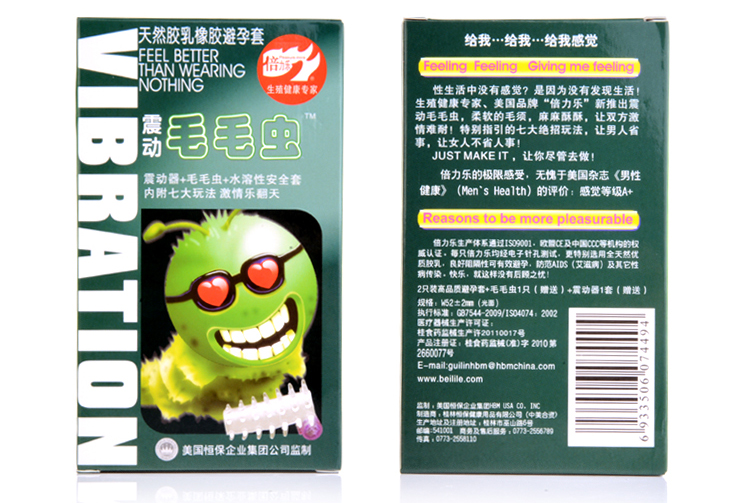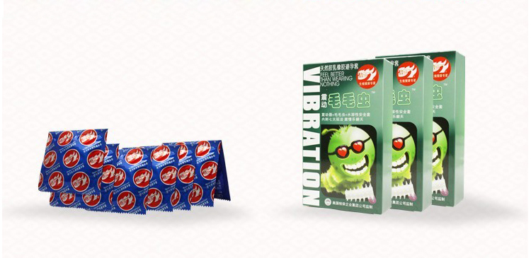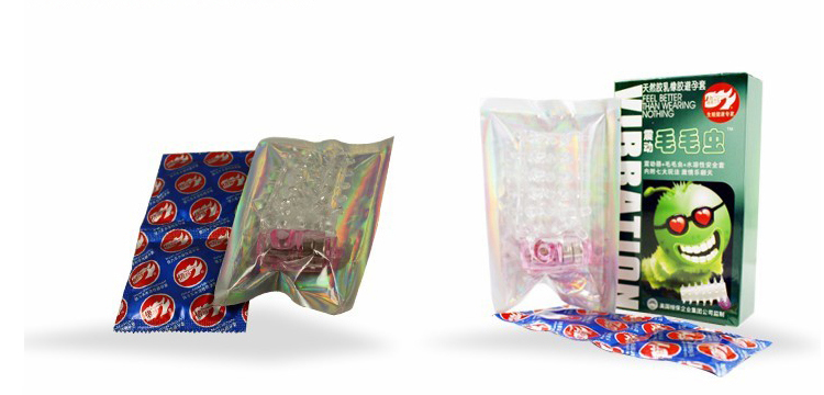 Mỗi hộp gồm một bao cao su silicon 6cm  với nhiều gai mềm được gắn cục rung và 2 bao cao su siêu mỏng hương thơm.