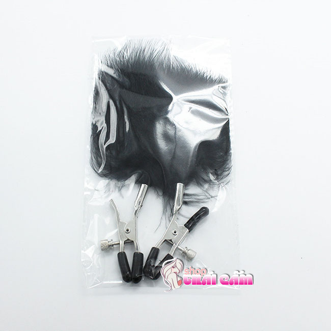 Bộ kẹp vú kèm chổi lông ấn tượng và khá độc đáo được trang bị hoàn toàn bằng hợp kim sáng loáng không gỉ sét, không đau phù hợp với tất cả mọi người.