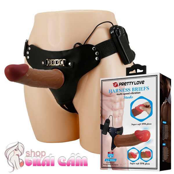 Dương vật đai đeo rỗng ruột màu nâu có rung