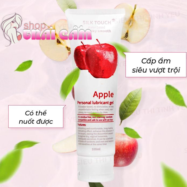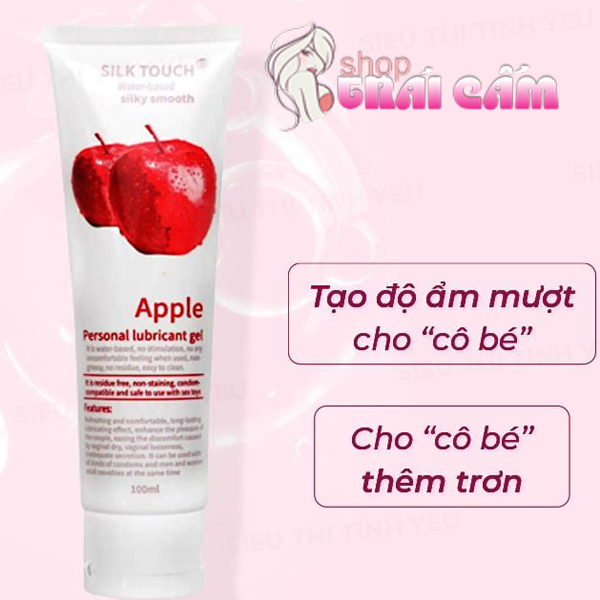 Ngoài ra, nó giảm ma sát và ngăn ngừa sự tổn thương không mong muốn trong quan hệ. Đồng thời, tạo cảm giác khoái cảm gia tăng trong quan hệ, kích thích nhẹ nhàng giúp đàn ông dễ đạt cực khoái. Gel bôi trơn Silk Touch Apple giúp âm đạo thêm thơm dễ chịu, cung cấp độ ẩm cho da, làm cho vùng kín mềm mịn và giúp "cậu bé" dễ dàng thâm nhập.
