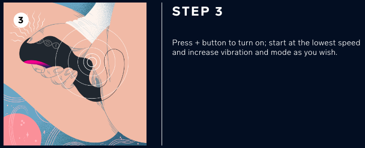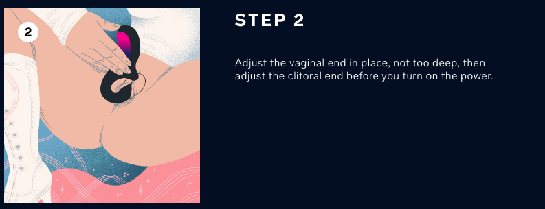 Đối với phần vị trí kích thích âm vật thì được tích hợp công nghệ sóng âm Sensonic, không cần tiếp xúc trực tiếp chỉ cần dùng những dao động sóng âm để kích thích âm vật một cách nhẹ nhàng nhưng mang tới những khoái cảm sâu và thăng hoa. Đồng thời, vị trí sóng âm này còn có công dụng làm săn chắc từ âm vật bên ngoài cho đến âm đạo bên trong.