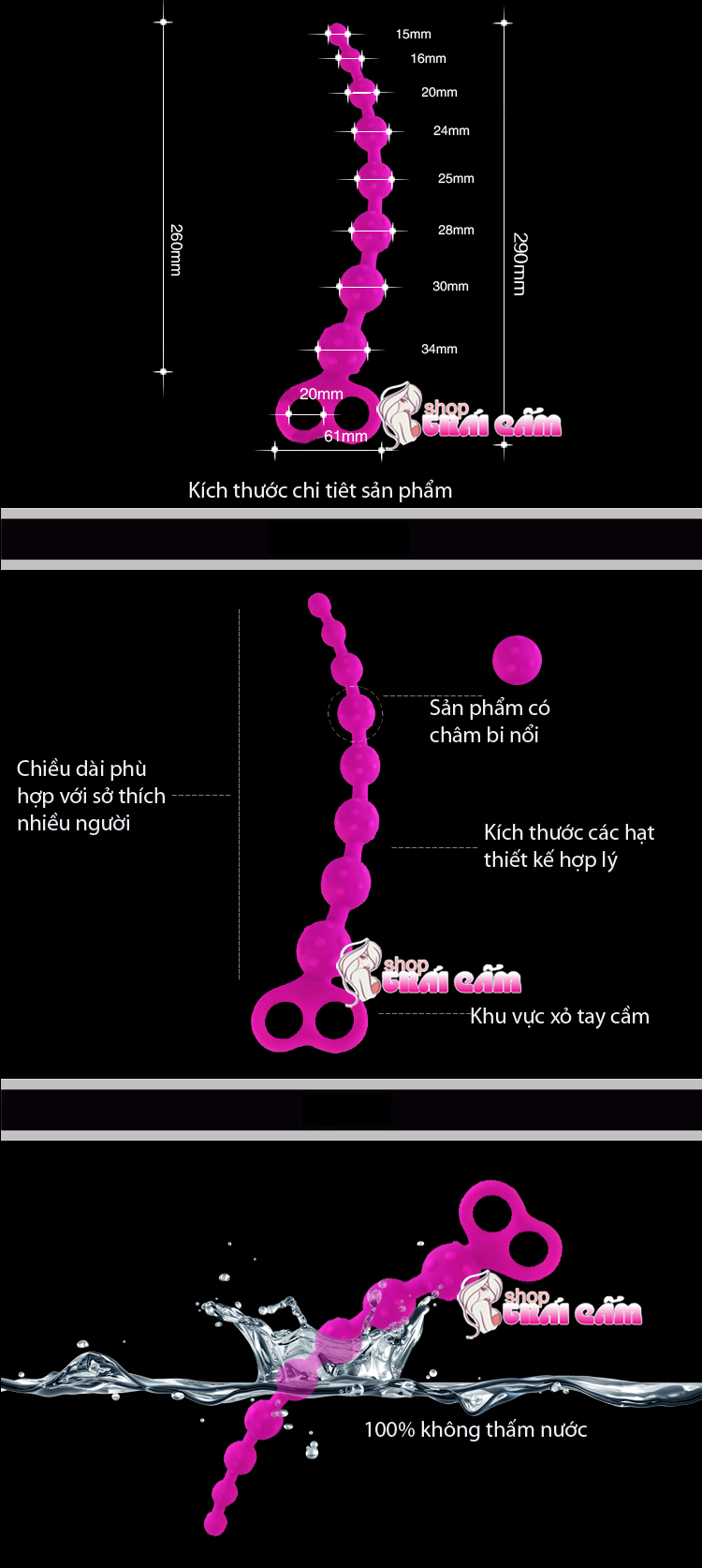 - Công dụng: Mát xa hậu môn, giải tỏa sinh lý, làm mới đời sống phòng the, thủ dâm