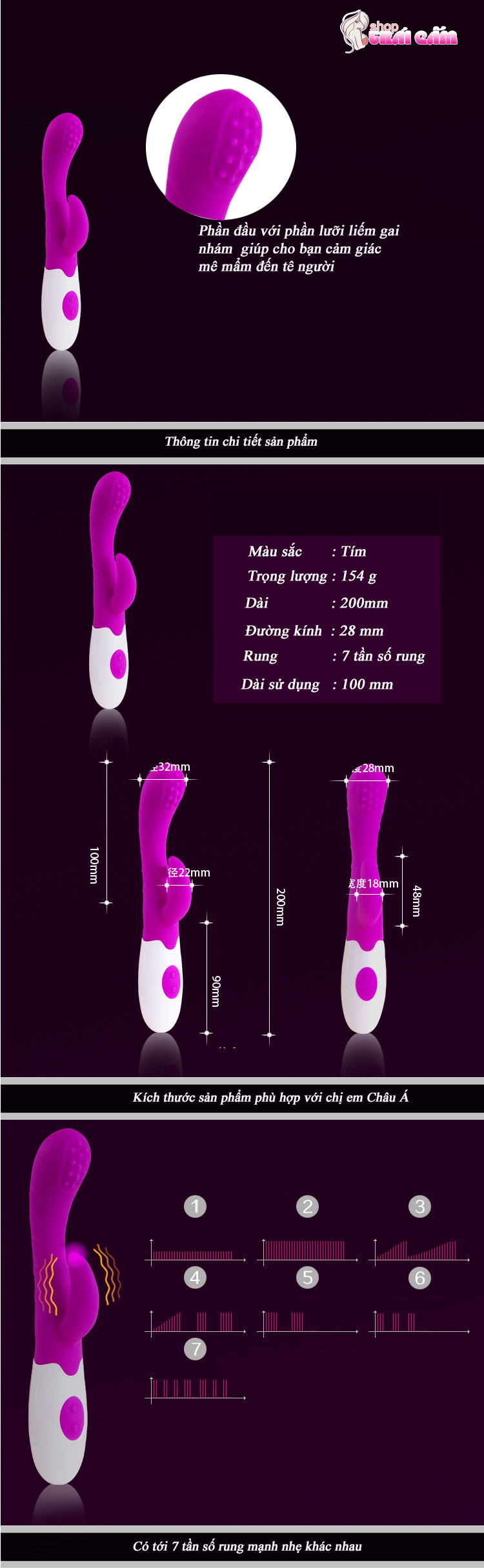 Mátxa điểm G cao cấp với lưỡi liếm gai nhám - được thiết kế tinh tế, sang trọng với màu tím lãng mạn. Sử dụng chất liệu Silicone, nhựa ABS y tế an toàn, mềm mại  và mịn màng sẽ mang đến cho bạn những trải nghiệm thú vị nhất. Với thiết kế gồm 7 tần số rung và 3 tần số liếm kích thích khác nhau sẽ đem đến cho bạn nhiều lựa chọn phù hợp với cảm xúc đê mê đến tuyệt vời.