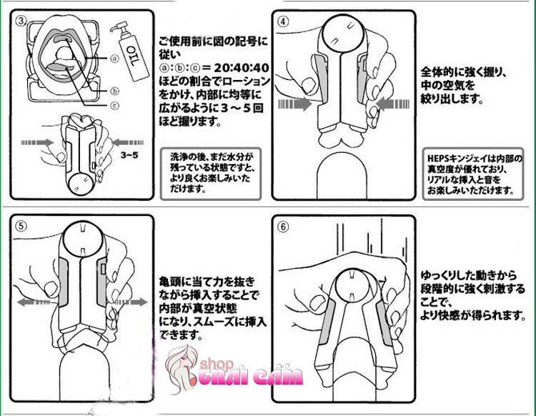 Tháo nắp đầu của siêu xe theo hướng ra ngoài. Sau đó, kéo hai bên hông xe để mở miệng thủ dâm. Cho dương vật vào bên trong, dùng lực tay di chuyển. Do sản phẩm làm từ silicon cao cấp nên có độ miết chặt.