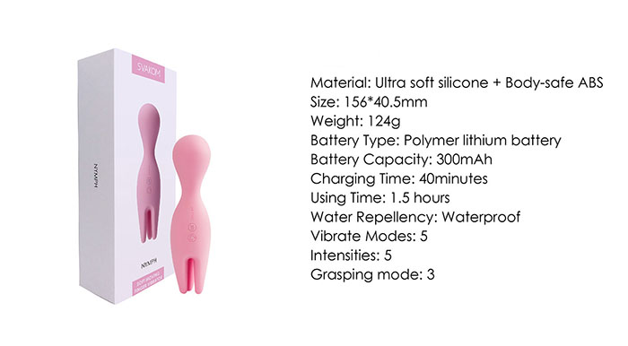 Máy Massage 2 Đầu Cao Cấp Svakom NYMPH được thiết kế khá nhỏ gọn nhưng động cơ hoạt động lại vô cùng mạnh mẽ. Bảng điều khiển liền thân dễ sử dụng với 1 đầu tròn 5 chế độ và đầu hoa tuy líp là 3 chế độ khác nhau. Sản phẩm được sản xuất với lớp silicone mềm bao quanh phần động cơ cho cảm giác giống da thịt của con người khiến cho người dùng có cảm giác thân thiện và thoải mái. Động cơ bên trong của cả 2 đầu được lập trình để bắt chước những động tác làm tình tuyệt vời dành cho "cô bé" ngực , tai và nhiều nơi nhạy cảm của chị em
