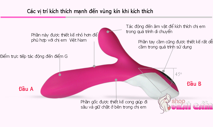 Sản phẩm được sản xuất từ chất liệu silicon cao cấp, với kiểu dáng bắt mắt, tinh tế và rất sang trọng. Sản phẩm được tích hợp 2 trong 1 vừa có thể tác động vùng âm đạo để tìm điểm G vừa tác động vào vùng âm vật để kích thích chị em đạt được đỉnh cao nhất.