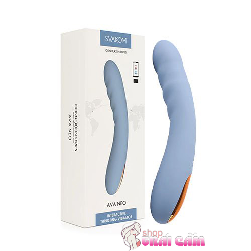 Svakom Ava Neo có thiết kế vừa sang trọng, vừa tinh tế với tông màu xanh dương cực kỳ lịch lãm. Trông nó như một dương vật cương cứng của phái mạnh đang sẵn sàng đút vào bên trong cô bé để khám phá. Bên trên bề mặt trơn mịn là các đường gờ lồi lõm giúp tạo kích thích mạnh mẽ vào thành âm đạo của chị em khi thủ dâm.