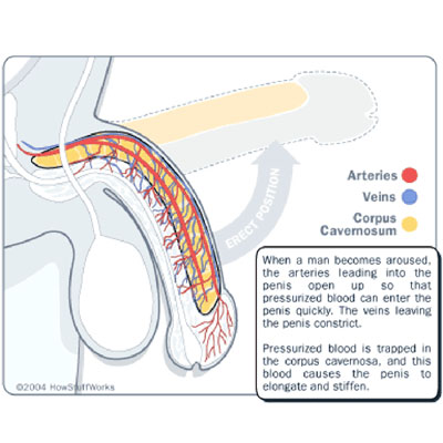 Sự cương cứng xảy ra khi các cơ trong dươngvật được thư giãn và được bơm đầy máu thông qua các động mạch. Đồng thời, máu chảy qua các tĩnh mạch bị chặn - sự kết hợp của hai hành động này sẽ giúp dương vật cương cứng. Khi các cơ của dương vật co lại thít chặn dòng chảy của động mạch, trong khi tĩnh mạch lại mở ra sẽ dẫn đến tình trạng dương vật không cương cứng được