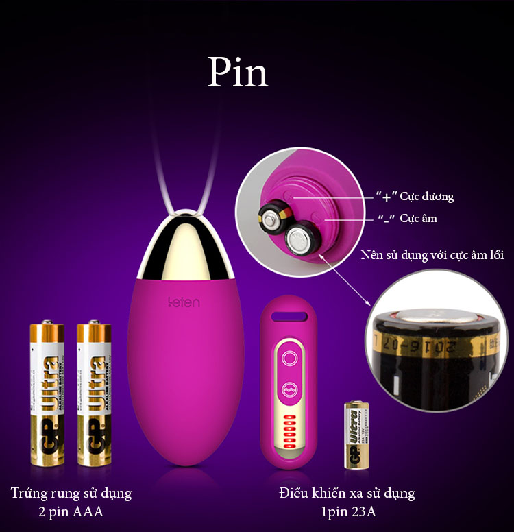 Pin: Trứng rung sử dụng 2pin AAA, Điều khiển xa sử dụng 1pin 23A
