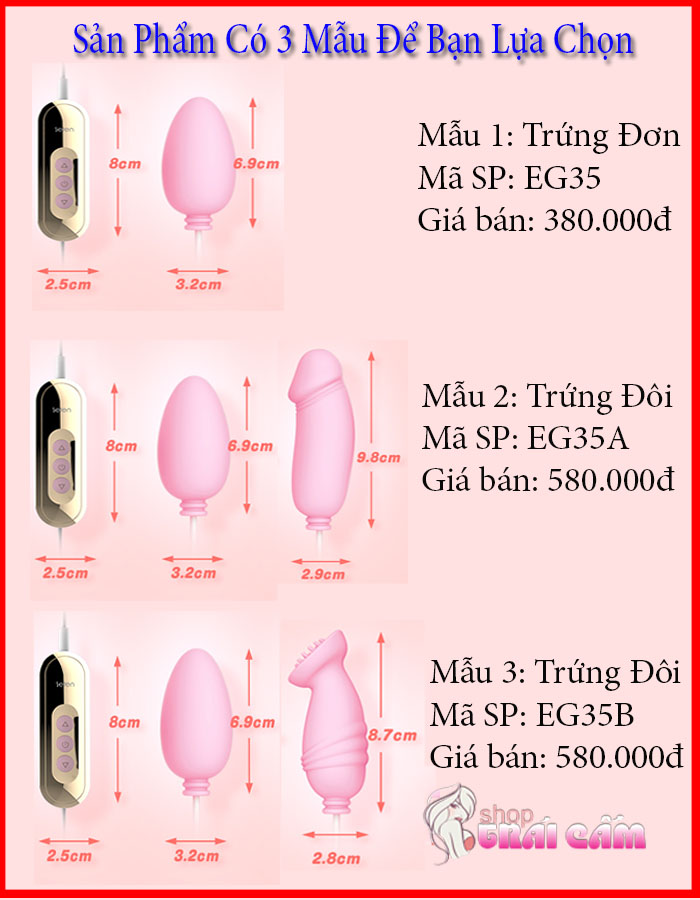 + Mẫu 2 : Trứng đôi: Giá 580.000đ - sản phẩm được kết hợp giữa mẫu 1 và thêm 1 trứng nữa, 2 trứng rung mạnh cùng lúc kích thích 2 điểm cho bạn gia tăng khoái cảm ( hình dưới )
